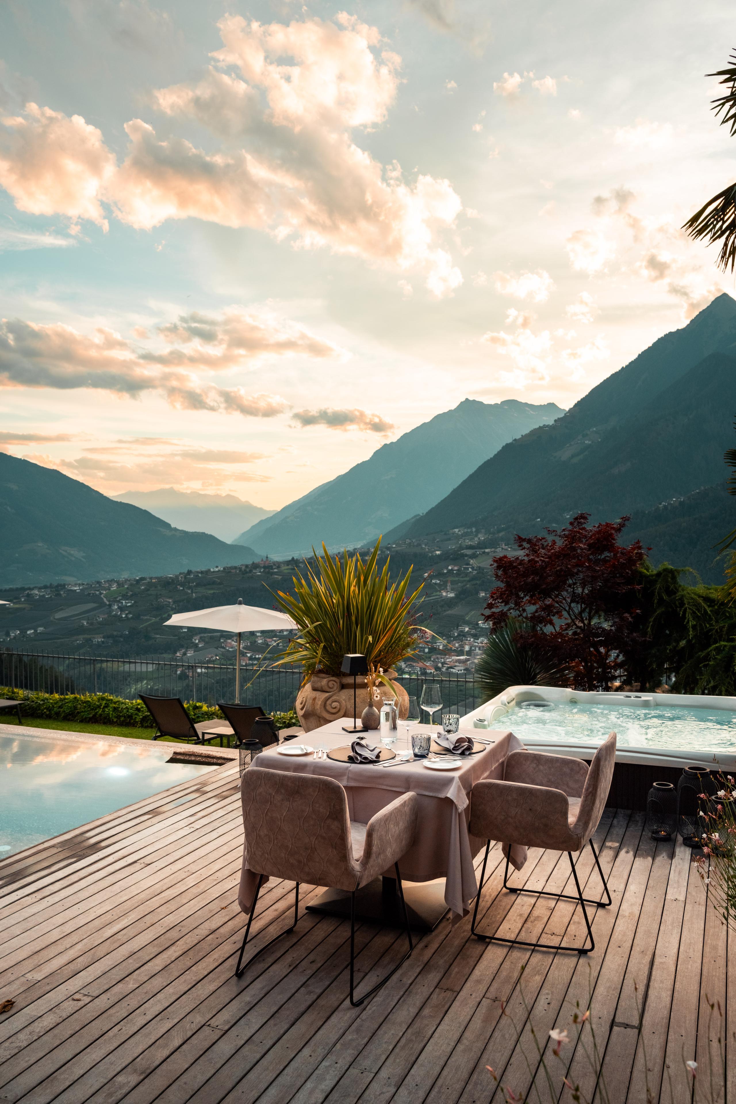 Kontrastreich – so beginnt der Frühling bei uns! Wenn die Apfelblüten langsam aufgehen und die Gipfel noch in Weiß leuchten, entsteht dieses besondere Gefühl, das man nur hier spürt! Den ersten Aperitivo auf der Terrasse genießen, ein Hauch "Dolce Vita in der Luft, die Sonne im Gesicht" – und plötzlich fühlt sich alles ein bisschen leichter an. Und der warme Infinity Pool wird zu Ihrem Lieblingsplatz, um all diese Kontraste noch einmal ganz bewusst zu erleben, bevor der Abend mit kulinarischen Highlights beginnt.